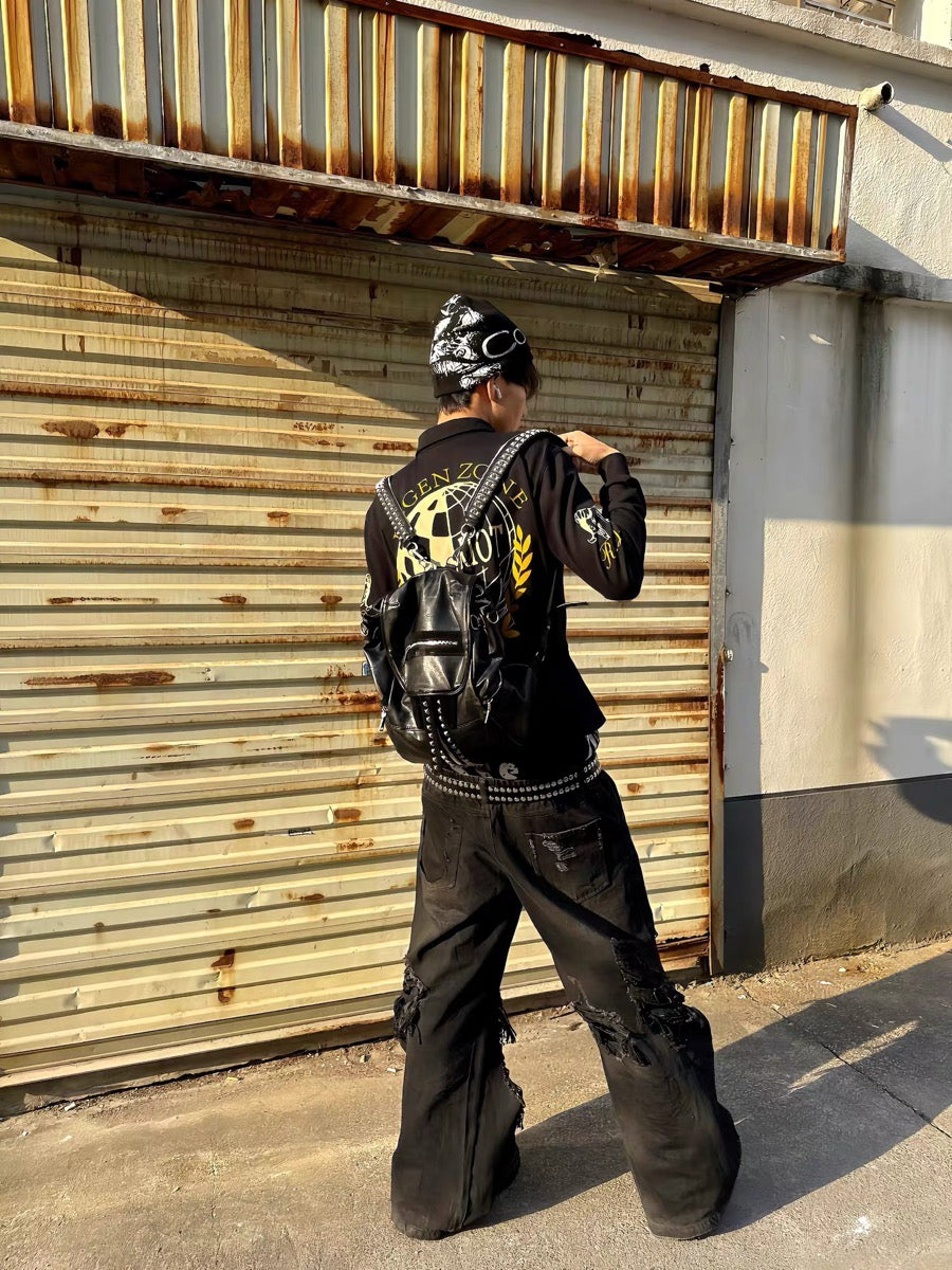 スタッズ ジップ バイカラー レザー バックパック Studded Zip Bicolor Leather Backpack