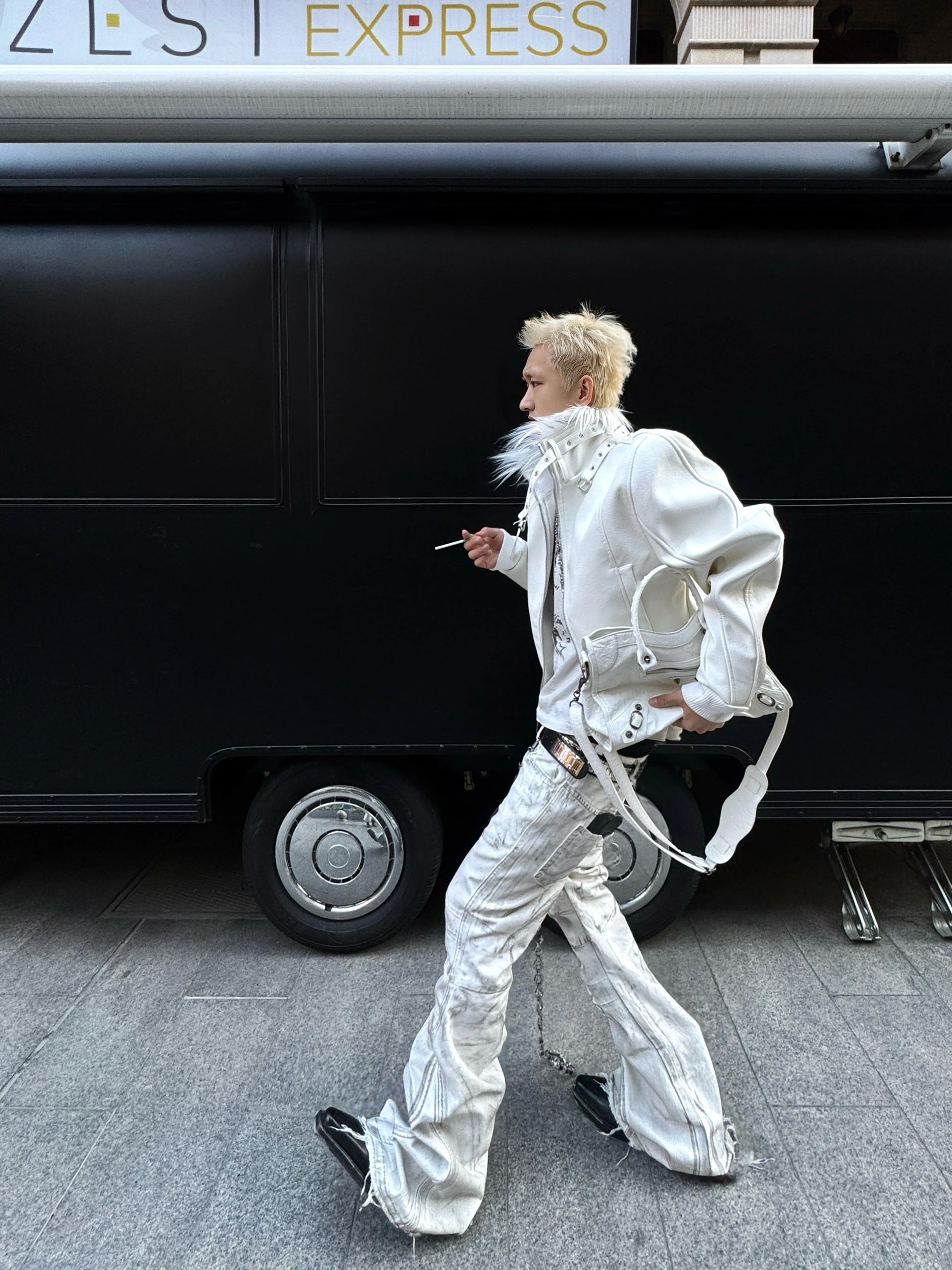 スノーホワイト ショート MA-1 ジャケット(ファーカラー脱着) Snow White Short MA-1 Jacket with Detachable Fur Collar