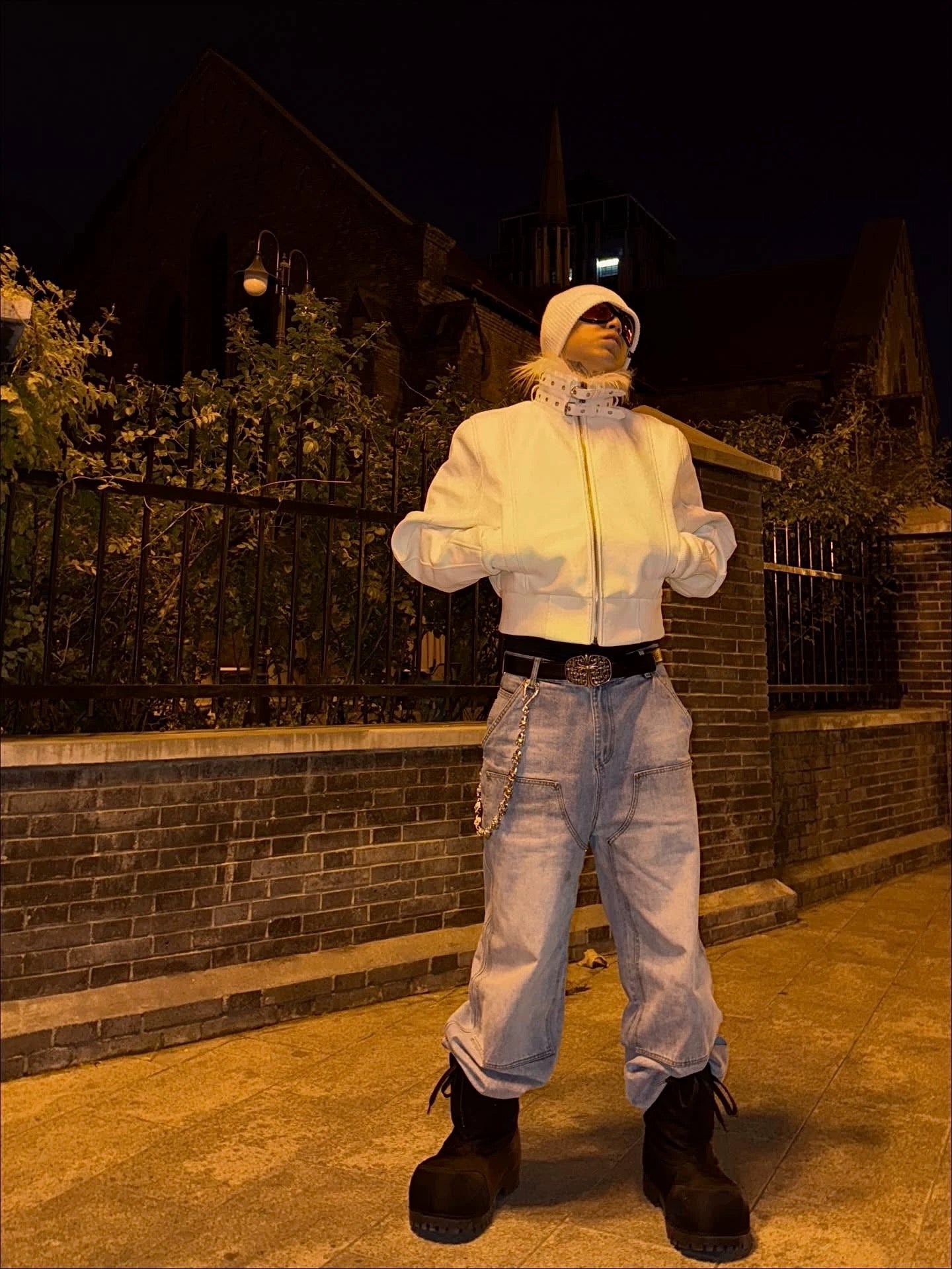 マットな質感と抑えたボリューム感が、スタイル全体を静かに引き締めます。