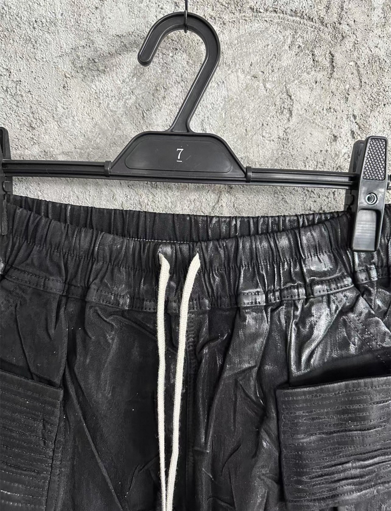レザーライクな光沢感と立体的なカーゴデザインが融合したショーツ。ブランド特有の無骨な存在感と抜け感のある丈感が特徴で、Tシャツ1枚でもコーデが仕上がるインパクトある一本です。
