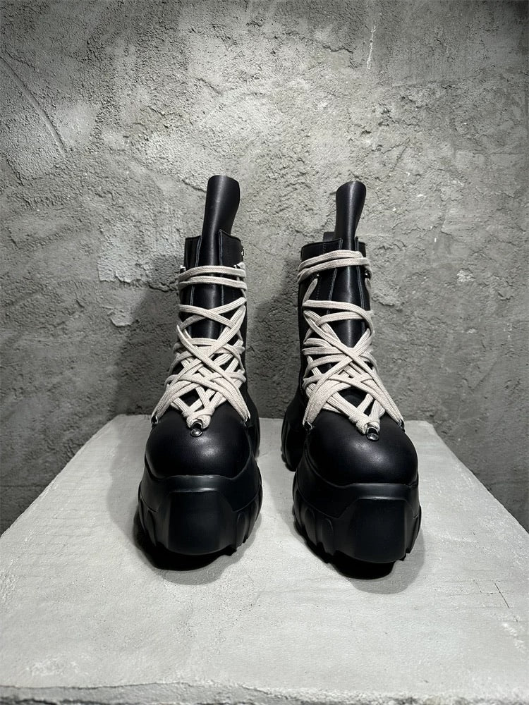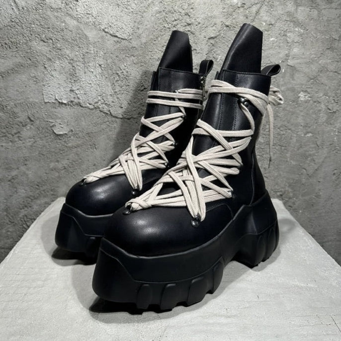 圧巻のボリュームソールと、立体的に組まれたレースデザインが印象的なモンスターブーツ。